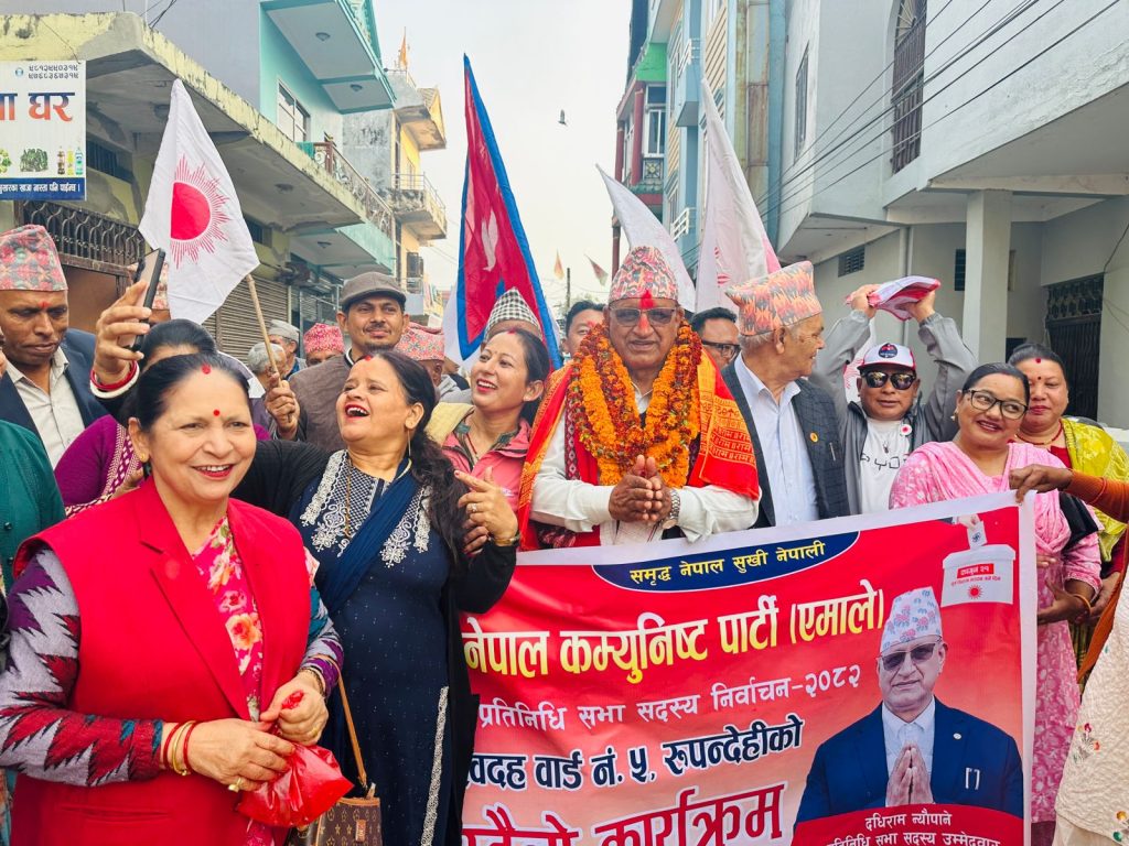 बुटवल ११ फागुन ।प्रतिनिधि सभा निर्वाचन नजिकिँदै गर्दा उम्मेद्वारहरु चुनावी प्रचारप्रसारमा व्यस्त छन् । मतदातामाझ आफ्ना योजना राख्ने र मत माग्नका लागि प्रायः उम्मेद्वारहरु घरदैलोमा हिडिरहेका छन् । यसैक्रममा रुपन्देही…