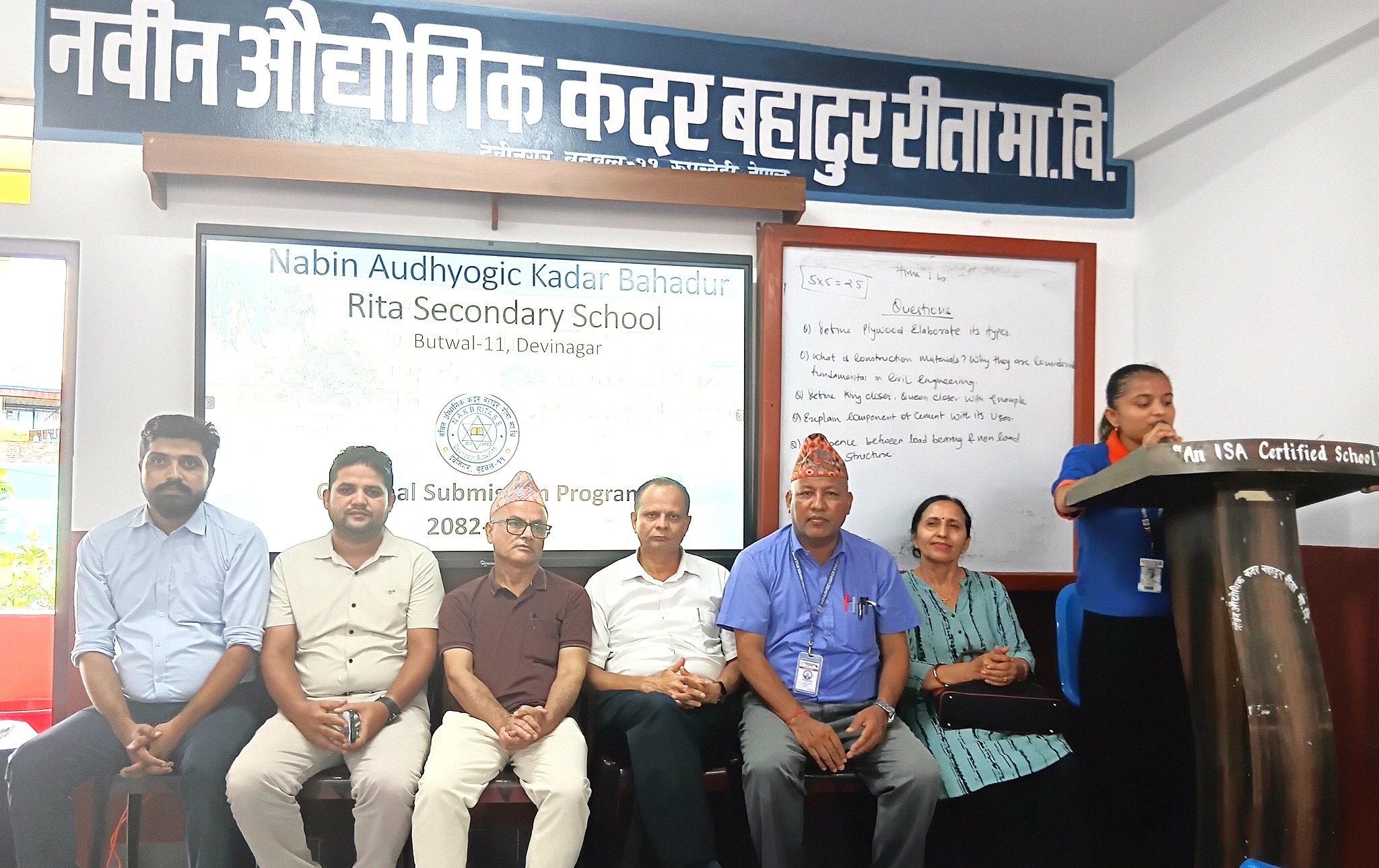 नवीन औद्योगिक कदरबहादुर रीता मावि देवीनगर बुटवलमा प्राविधिक धार अन्तर्गत सिभिल इन्जिनियरिङ तर्फ कक्षा १२ को ओजेटी मूल्याङ्कन सम्पन्न भएको छ ।