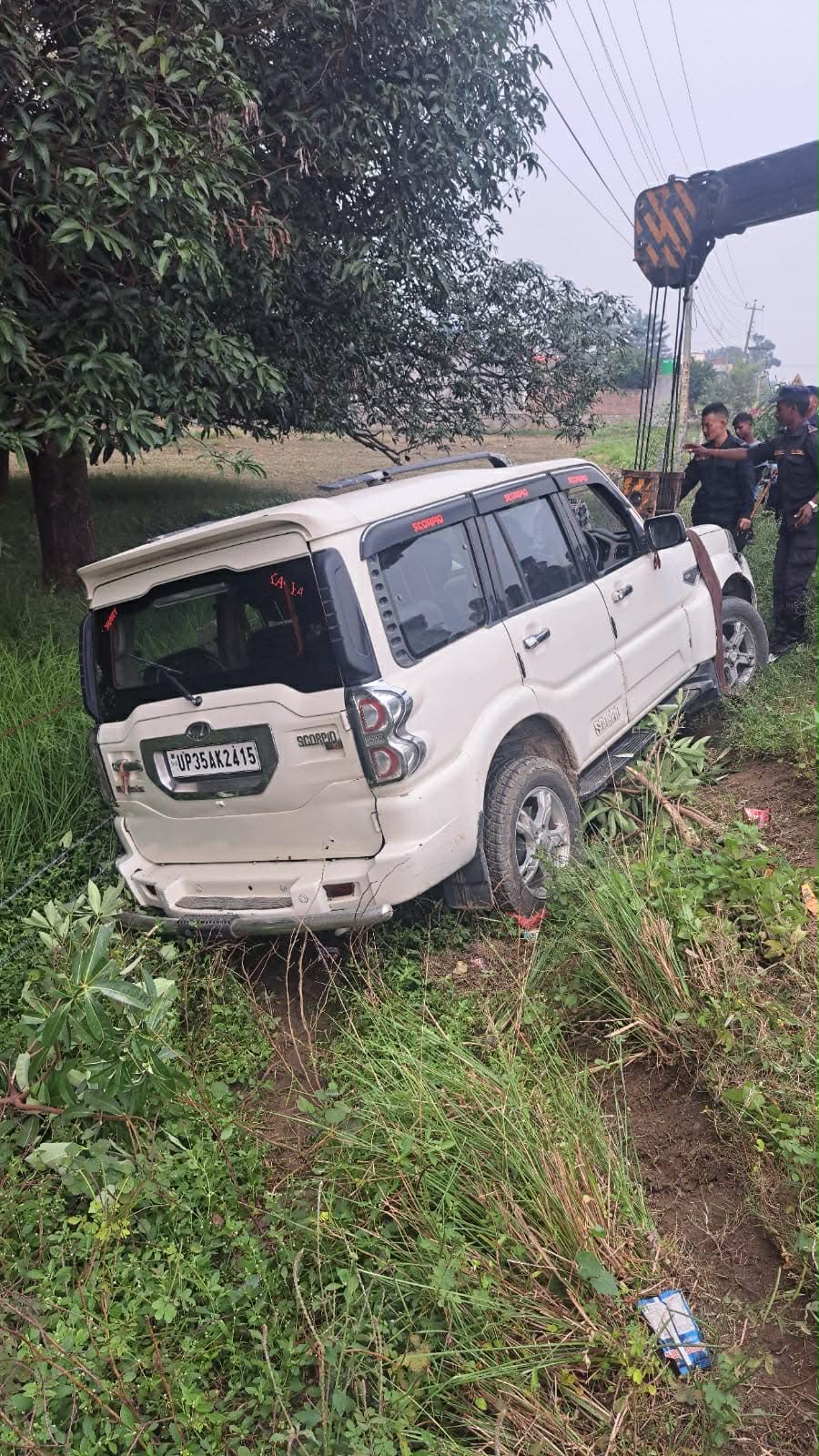 यु पि ३५ ए के २४१५ नम्बरको महिन्द्रा स्कार्पियोले बाटो क्रस गर्दै गरेका पैदल यात्री चौधरीलाई ठक्कर दिएको जिल्ला ट्राफिक कार्यालय कपिलवस्तुका प्रहरी निरीक्षक राजन ढकालले जानकारी दिए।