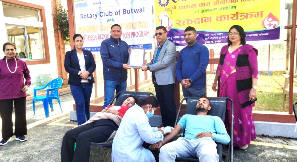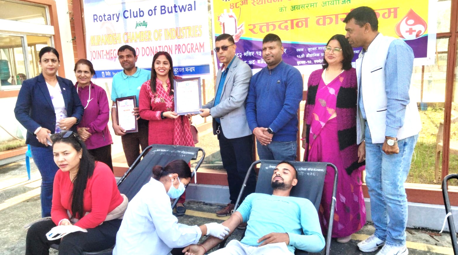 रूपन्देही उद्योग संघको ४८ औं स्थापना एवं औद्योगिक दिवस–२०८२ को अवसरमा शुक्रबार बुटवलमा रक्तदान कार्यक्रम सम्पन्न भएको छ । रोटरी क्लब अफ बुटवलको सहकार्यमा आयोजित कार्यक्रममा उद्योगी–व्यवसायी, सामाजिक अभियन्ता, र विभिन्न संघसंस्थाका प्रतिनिधिहरूको सक्रिय सहभागिता रहेको थियो ।
