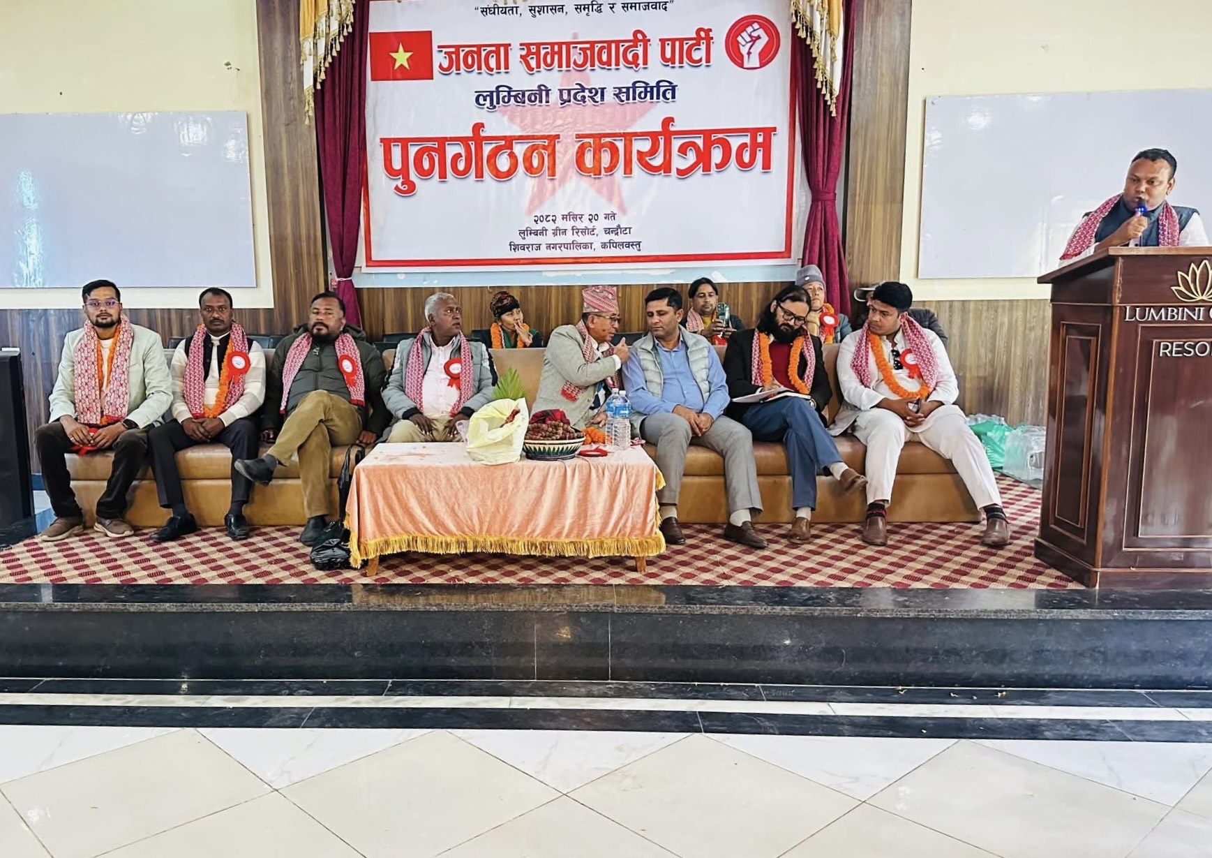 अशोक कुमार राई नेतृत्वको जनता समाजवादी पार्टीले लुम्बिनी प्रदेश समिति पुनर्गठन गरेको छ । शनिबार कपिलवस्तु जिल्लामा सम्पन्न पार्टीको प्रदेश समिति पुनर्गठन भेलाले अकरम पठानको अध्यक्षतामा ५१ सदस्यीय प्रदेश समिति गठन गरेको हो ।