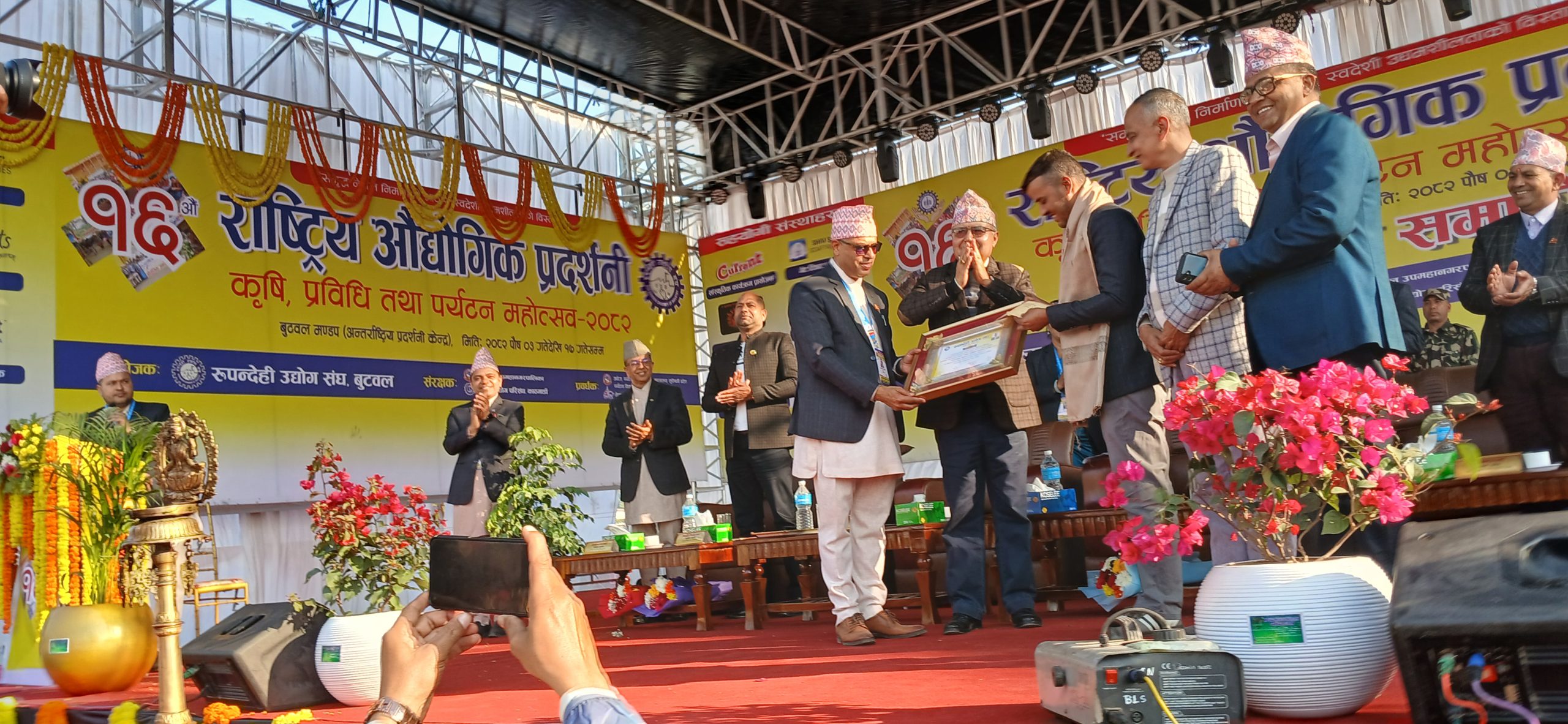 रुपन्देही उद्योग संघको आयोजनामा बिहिवारदेखि बुटवलमा १६औं राष्ट्रिय औद्योगिक प्रदर्शनी कृषि, प्रविधी तथा पर्यटन महोत्सव २०८२ सुरु भएको छ । प्रर्दशनीको उद्घाटन अर्थमन्त्री रामेश्वर खनालले गरेका छन् । पुस ३ गतेदेखि १७ गतेसम्म सञ्चालन हुने प्रदर्शनीमा ५ सय स्वदेशी उद्योग मात्र रहेको आयोजक रुपन्देही उद्योग संघका अध्यक्ष कृष्ण प्रसाद पराजुलीले जानकारी दिए । प्रर्दशनीले यस क्षेत्रको आर्थिक गतिविधिमा टेवा पु¥याउने धारणा पनि उनले राखे ।