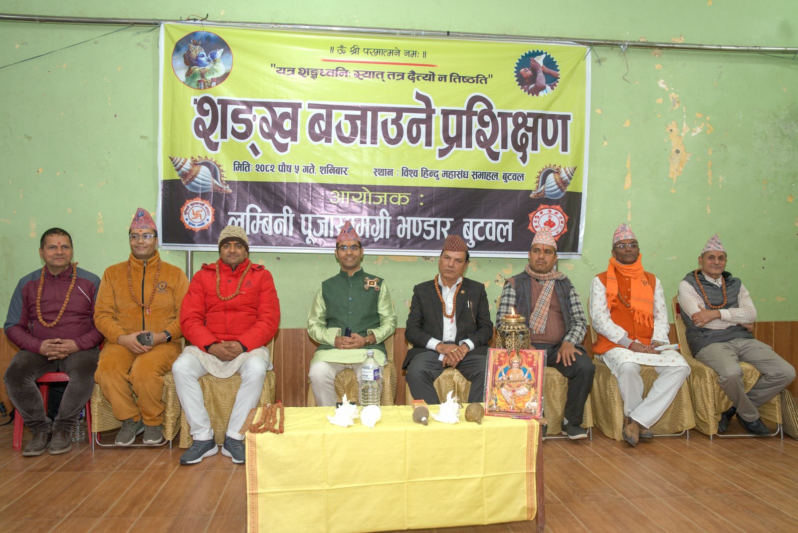 विश्व हिन्दु महासङ्घ बुटवलको सभाहलमा आयोजित कार्यक्रममा २० जना प्रशिक्षकहरूले विभिन्न समूहमा प्रशिक्षार्थीहरूलाई विभाजन गरी शङ्ख बजाउन अभ्यास गराएका थिए ।आयोजकले यस किसिमको प्रशिक्षण नेपालमै पहिलो पटक भएको दावी गरेका छन् । प्रशिक्षणमा लुम्बिनी प्रदेश र नेपाल भारत सीमावर्ती क्षेत्रबाट समेत गरी २५० जनाको सहभागिता रहेको थियो ।