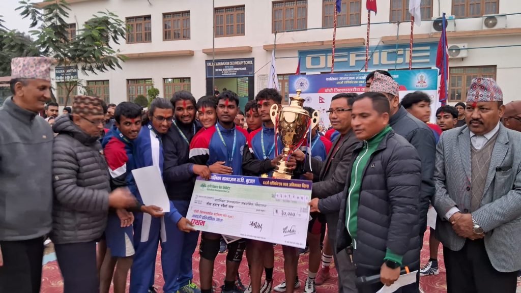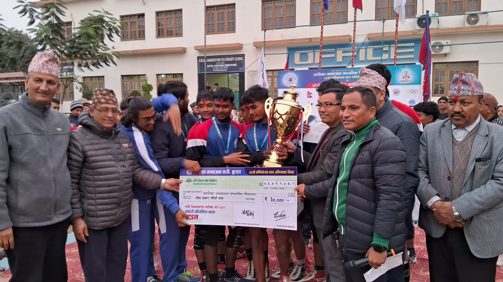 कालिका मानवज्ञान मावि बुटवलको ६५औं वार्षिक उत्सव तथा अभिभावक दिवस २०८२ को अवसरमा आयोजित जिल्लास्तरीय कालिका कप प्रतियोगिता शनिबार भव्य रुपमा सम्पन्न भएको छ। छात्र कबड्डीतर्फ कालिका मानवज्ञान मावि प्रथम ,नवीन औद्योगिक कदर बहादुर रीता मावि द्वितीय, मणिमुकुन्द मावि र न्यू होराइजन मावि तृतीय भएका छन्। छात्रा कबड्डीतर्फ न्युराइजन मावि प्रथम, कालिका मानवज्ञान मावि द्वितीय र नवीन औद्योगिक कदरबहादुर रीता मावि र कान्ति मावि तृतीय भएका छन्। छात्र भलिबलतर्फ न्युराइजन मावि प्रथम ,मणिमुकुन्द मावि द्वितीय र नवीन औद्योगिक कदरबहादुर रीता मावि तृतीय भएका छन्। छात्रा भलिबलमा एभरेस्ट बोर्डिङ स्कुल प्रथम, न्युराइजन मावि द्वितीय र कुँवरवर्ती बोर्डिङ स्कुल तृतीय भएका छन्। भलिबल र कबड्डीमा प्रथम र द्वितीय हुनेलाई नगद ३० हजार र २०,००० भलिबलतर्फ तृतीय हुनेलाई १०००० र कबड्डीतर्फ तृतीय हुनेलाई ५००० नगद, प्रमाणपत्र ,ट्रफी र पदक कालिका मानवज्ञान विद्यालयका व्यवस्थापन समितिका अध्यक्ष नित्यानन्द ज्ञवाली, बुटवल कालिका क्याम्पसका क्याम्पस प्रमुख घनश्याम पाठक, विद्यालयका प्रधानाध्यापक दिनेश थापा, नवीन औद्योगिक कदरबहादुर रिता माविका प्रधानाध्यापक प्रेमबहादुरबस्नेत र एथलेटिक्सका वरिष्ठ प्रशिक्षक मोहन घले लगायतले वितरण गरेका थिए कालिका मानव ज्ञान माध्यमिक विद्यालय व्यवस्थापन समितिका अध्यक्ष नित्यानन्द ज्ञवालीको अध्यक्षतामा इभेन्ट संयोजक हरिबहादुर ओलीको सञ्चालनमा कार्यक्रम सम्पन्न भएको थियो।