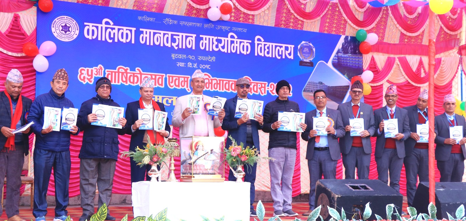 विद्यालय व्यवस्थापन समितिका अध्यक्ष नित्यानन्द ज्ञवालीको अध्यक्षतामा भएको मुल समारोहमा बुटवल उपमहानरपालिका प्रमुख खेलराज पाण्डेको प्रमुख आतिथ्यता रहेको थियो । कार्यक्रममा बोल्दै पाण्डेले शैक्षिक क्षेत्रमा कालिका मानावज्ञान माविको भुमिका सबैभन्दा महत्वपूर्ण भएको बताएका थिए । उनले शैक्षिक, भौतिक, व्यवस्थापकीय रुपमा देशकै अब्बल सामुदायिक विद्यालयको रुपमा पहिचान स्थापना गर्न सकेकोमा बधाई ज्ञापन गरेका थिए ।
