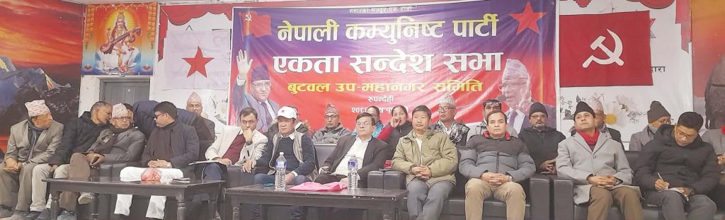 नेपाली कम्युनिष्ट पार्टी बुटवल उपमहानगरपालिका समितिले आयोजना गरेको एकता सन्देश सभामा बोल्दै नेपालको सिङ्गो कम्युनिष्ट आन्दोलनलाई रक्षा गर्न र मुलुक र जनताको रक्षा गर्नका लागि माओवादी केन्द्र र एकिकृत समाजबादी लगायतका अरु दलहरु बिच पार्टी एकता गरिएको बताएका हुन । उनले एकता कसैलाई पद दिनकालागि केन्द्रीय सदस्य बनाउनका लागि नभई सिङ्गो नेपाली कम्युनिष्ट आन्दोलनको रक्षा गदै नेपाली बिशेषता अनुरुपकोे समाजबाद पुग्ने लक्ष्यका साथ पार्टी एकिकरण गरिएको बताए । नेता पाण्डेले एकताका बारेमा अनेक खालका भ्रम ,अनर्गल प्रचार गरिएको समेत बताउदै जनतालाई सचेत बनाउन आबस्यक रहेको तर्क समेत गरे ।