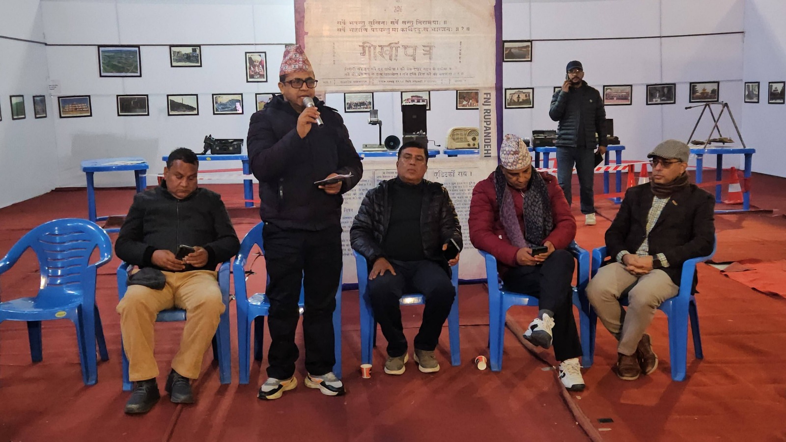 नेपाल पत्रकार महासंघ रूपन्देहीको आयोजनामा ‘सञ्चार, फोटो र प्रदर्शनी अनुसन्धान अन्तरसंवाद’ कार्यक्रम सम्पन्न भएको छ । रुपन्देही उद्योग संघले बुटवल मण्डपमा पुस ३ देखि १७ गतेसम्म आयोजना गरेको १६ औं राष्ट्रिय औद्योगिक प्रदर्शनी, कृषि, प्रविधि र पर्यटन महोत्सवका अवसरमा मंगलबार आयोजना गरेको यो कार्यक्रममा सहभागीहरुले फोटो पत्रकारितालाई डिजिटल र संस्थागत रूपमा अघि बढाउन सुझाव राखेका छन् ।