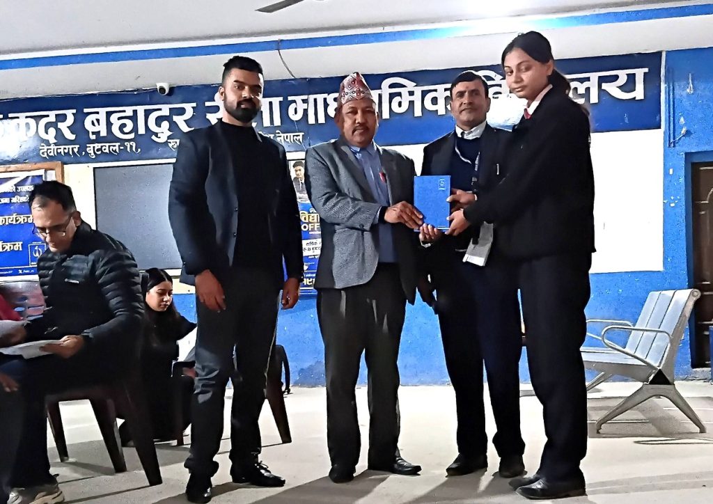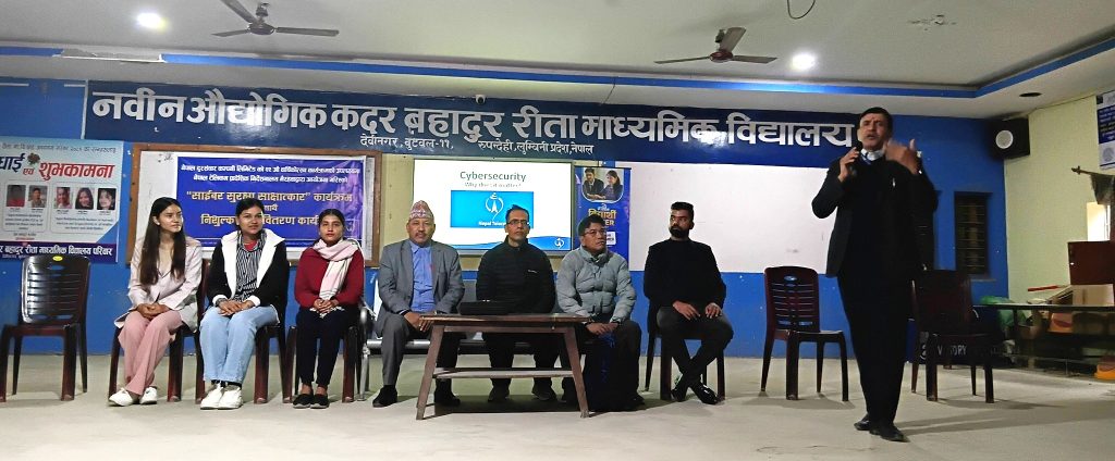 नेपाल टेलिकम प्रादेशिक निर्देशनालय भैरहवाद्वारा नवीन औद्योगिक कदर बहादुर रीता माध्यमिक विद्यालय बुटवलमा अध्ययनरत विद्यार्थीहरूलाई साइबर सुरक्षा सम्बन्धी साक्षात्कार तथा निःशुल्क सिम वितरण कार्यक्रम बुधबार सम्पन्न भएको छ।