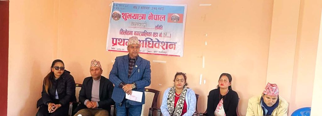 शुभयात्रा नेपाल बनकट्टी समिति –तिलोत्तमा १३ रूपन्देहीको प्रथम अधिबेशन सम्पन्न भएको छ । अधिवेशनबाट संयोजक सीता शर्मा भुषाल, सह संयोजक शोभा गौतम भुषाल ,सचिव टिका कुमारी पाण्डे, सह सचिव राज कुमार यादव, कोषाध्यक्ष गौरी थापा ,सदस्य विकास मवारी, सदस्य दुर्गा कुमारी भुषाल सहित ११ सदस्यीय समिति सर्वसम्मत निर्वाचित भएको छ ।