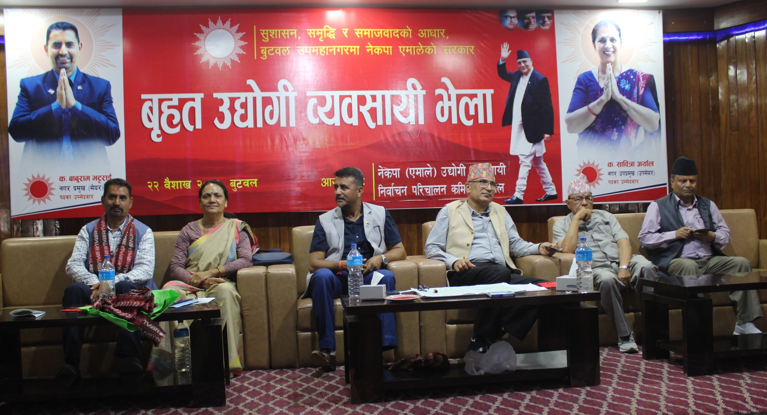 भेलामा बुटवल उपमहानगरपालिकाका प्रमुख पदका उम्मेदवार बाबुराम भट्टराईले बुटवललाई आर्थिक राजधानीको रुपमा विकास गर्ने बताए । “हरेक काममा जनताको साथमा हुनेछौँ, तपाइँहरुको शिर झुक्ने गरी काम गर्ने छैनौं ”, उनले भने । अहिले राजनीतिक दलप्रति आम नागरिकको वितृष्णा बढेको जनाउँदै यस्तो अवस्थाको अन्त्य हुने गरी जनताको मन बुझेर काम गर्ने प्रतिवद्धता जनाए ।