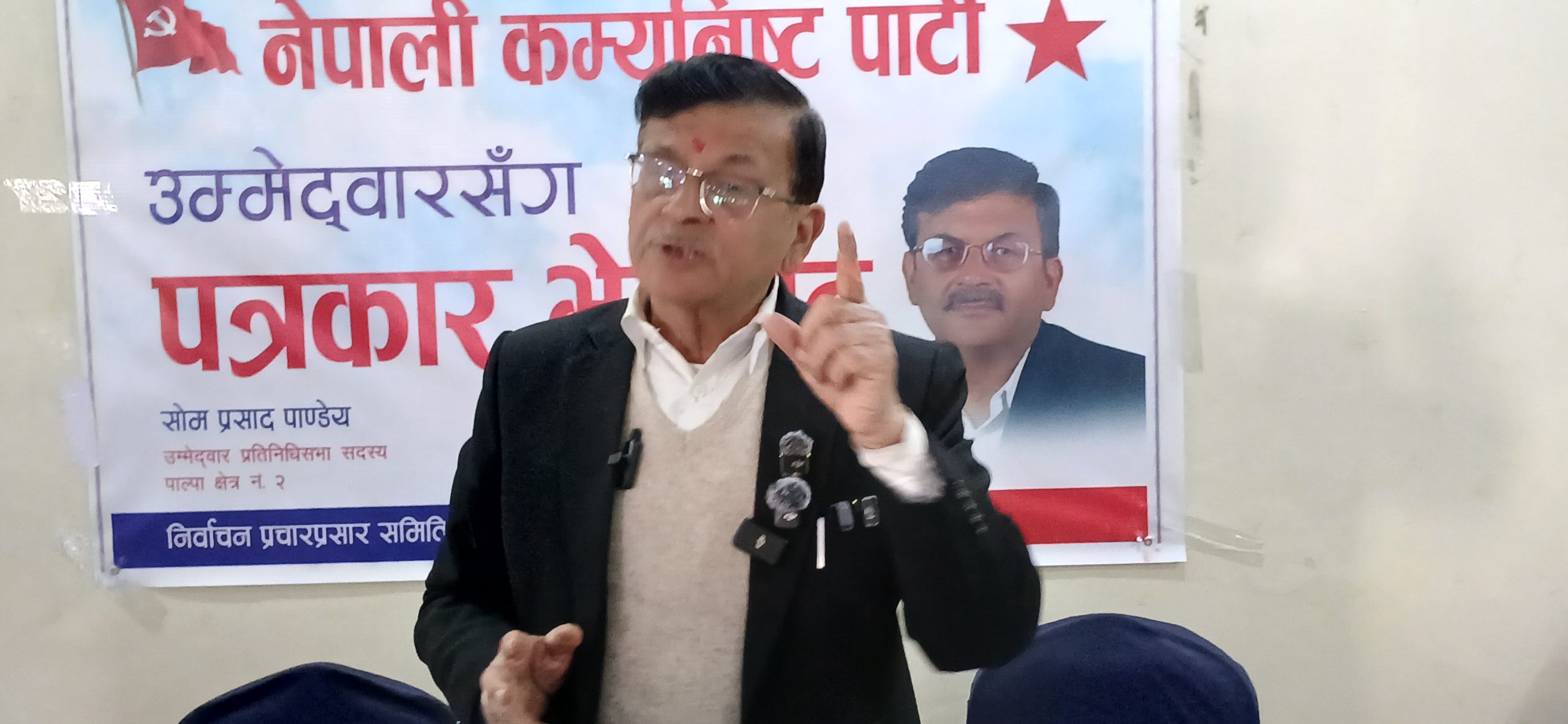 नेपाली कम्युनिष्ट पार्टी का नेता तथा पाल्पा क्षेत्र नम्बर २ का उम्मेदवार सोमप्रसाद पाण्डेले पाल्पाको समृद्धिमा योगदान दिन आफू चुनावी मैदानमा उत्रिएको बताएका छन् । पाल्पाली जनताको मायाले विगतमा निर्वाचित भएको र मन्त्रीसम्म बनेर पाल्पाको विकासमा गरेको योगदान सबैका सामु रहेको भन्दै विगतमा शुरु गरिएको योजना पुरा गर्न तथा थप योजनाहरु अगाडी बढाउन आफू निर्वाचित हुन खोजेको उनले बताए ।