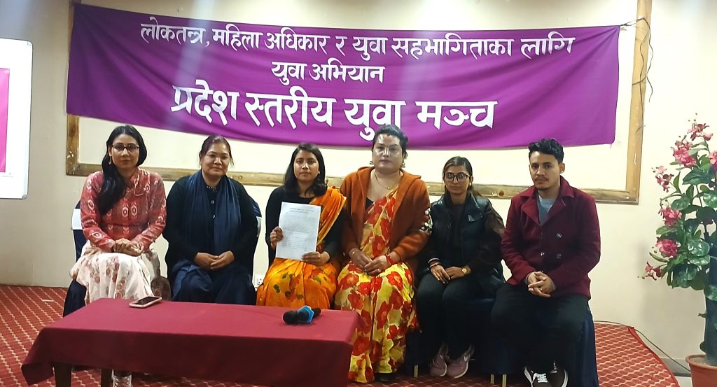 महिला र युवालाई उम्मेदवार बन्ने समान अवसर प्रदान गर्दै टिकट वितरणमा प्रथामिकता दिने नीतिगत व्यवस्था गर्नसमेत उनीहरूले माग गरेका छन्। निर्वाचन घोषणापत्रहरूमा युवा र महिलाका विशिष्ट आवश्यकता, मुद्दा र प्राथमिकताहरूलाई स्पष्ट रूपमा सम्बोधन र समावेश गर्न पनि उनीहरूले माग गरेका छन् ।