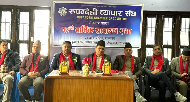 रुपन्देही व्यापार संघ सेमलार शाखाको १३औं वार्षिक साधारणसभा शनिबार सम्पन्न भएको छ । बुटवल उपमहानगरपालिका वडा नं. १५, मधैया नमुना टोल जेष्ठ नागरिक भवनमा उक्त साधारणसभा सभा सम्पन्न भएको हो ।