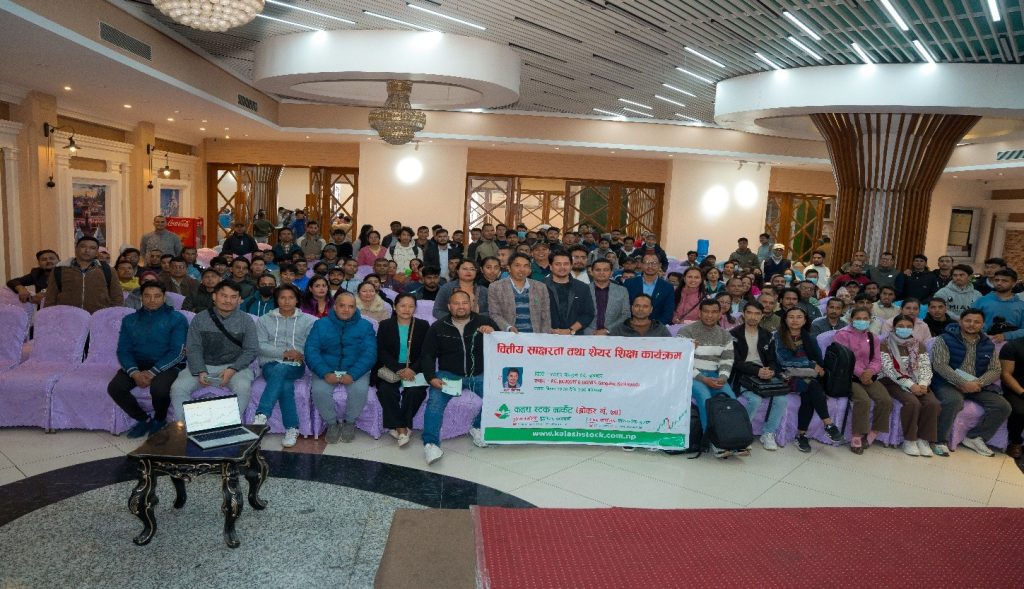 कार्यक्रमका श्रोत ब्यक्ति पूँजी बजार विश्लेषक सिए संजोग कोइरालाले सहभागीहरुलाई शेयर बजारका विविध पक्षहरुमा प्रकाश पारे । काठमाडौको गोङ्गबुमा रहेको बि.जी. ब्याङ्केट एण्ड इभेन्ट सेन्टरमा सञ्चालन भएको उक्त कार्यक्रममा उल्लेख लगानिकर्ताहरुको सहभागिता रहेको थियो ।