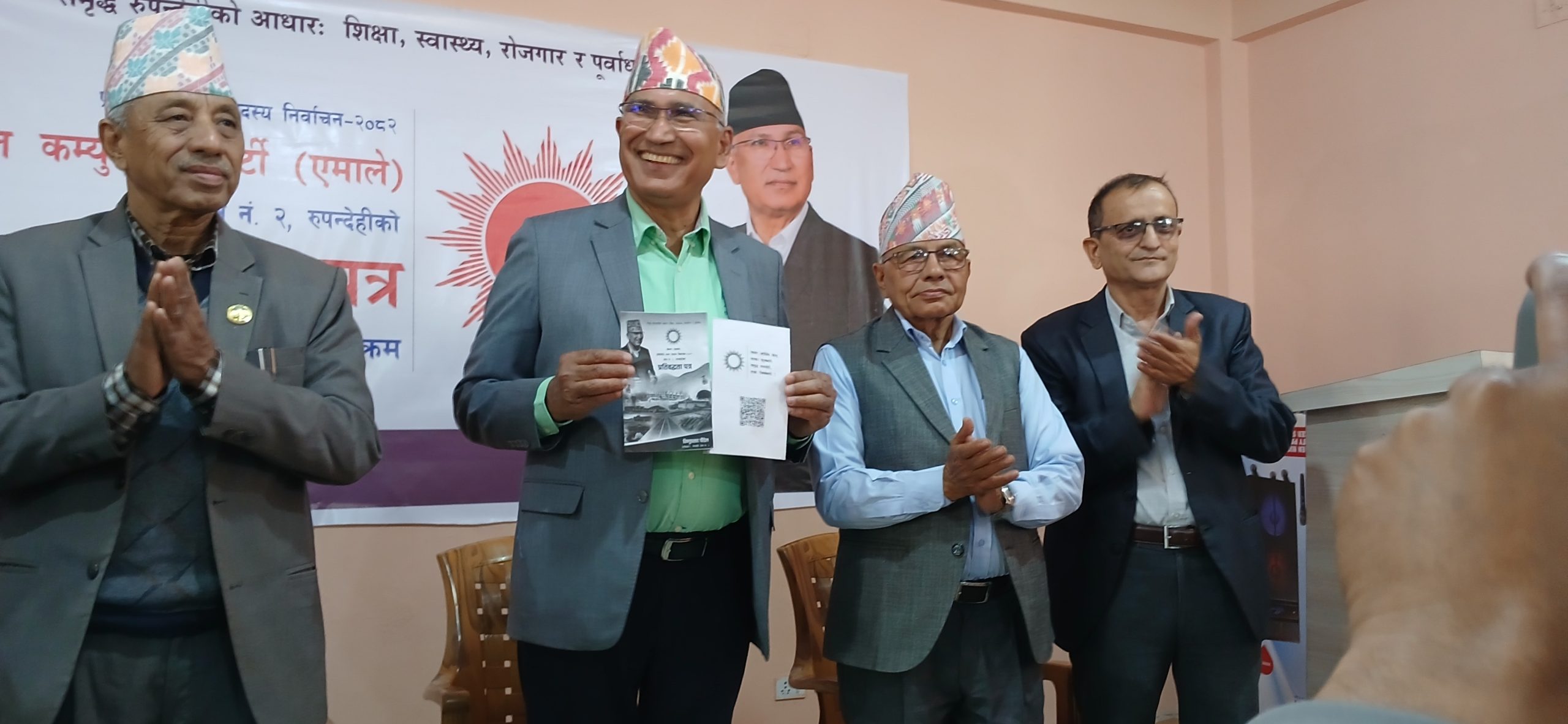 विकास, सुशासन र सामाजिक न्यायलाई केन्द्रमा राख्दै प्रतिबद्धतापत्रमा रुपन्देहीका विभिन्न पालिकाहरुलाई जोडेर महानगरिय ढाचामा सहरी पूर्वाधार निर्माण गर्ने देखि राष्टि