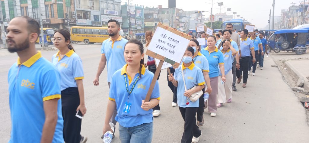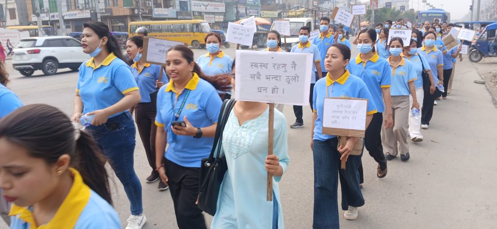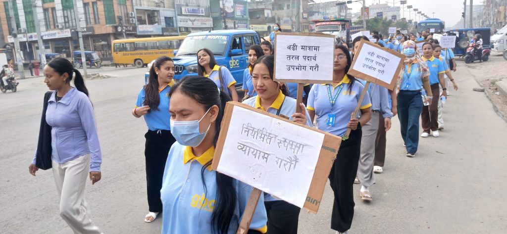 अस्पतालबाट राजमार्ग चौराहा, मिलनचोक, अस्पताललाइन हुँदै ट्राफिकचोकसम्म जनचेतना र्‍याली गरिएको थियो । र्‍यालीमा सहभागीहरूले जनचेतनामूलक प्लेकार्डहरू हातमा लिएका थिए । प्ले काडहरूमा स्वस्थ रहन अपनाउनुपर्ने सन्देश लेखिएको थियो ।