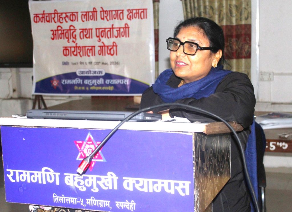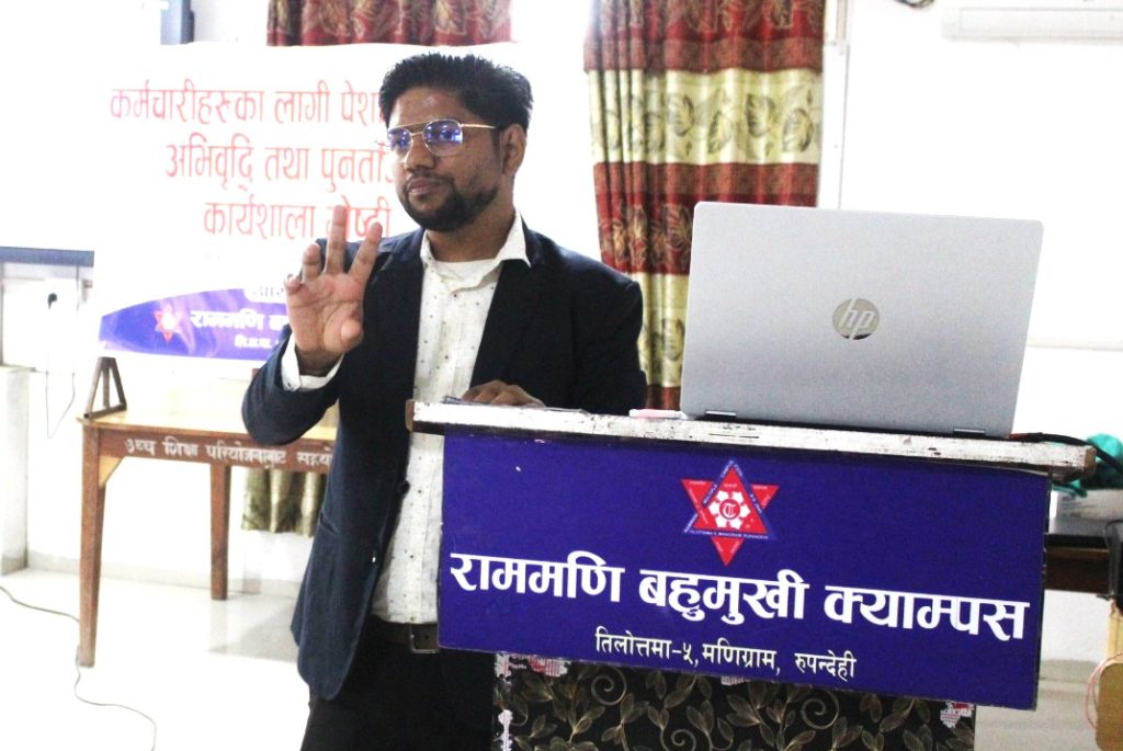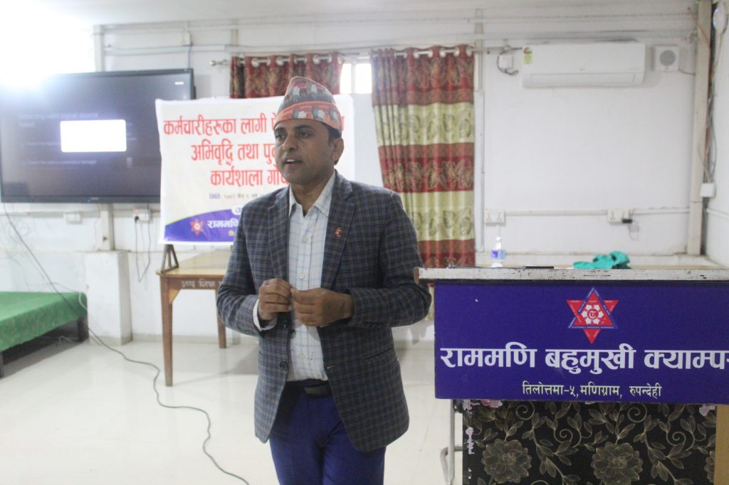 राममणि बहुमुखी क्याम्पसमा कार्यरत “कर्मचारीहरूका लागि पेशागत क्षमता अभिवृद्धि तथा पुनर्ताजगी कार्यशाला गोष्ठी” क्याम्पसमा सम्पन्न भएको छ ।