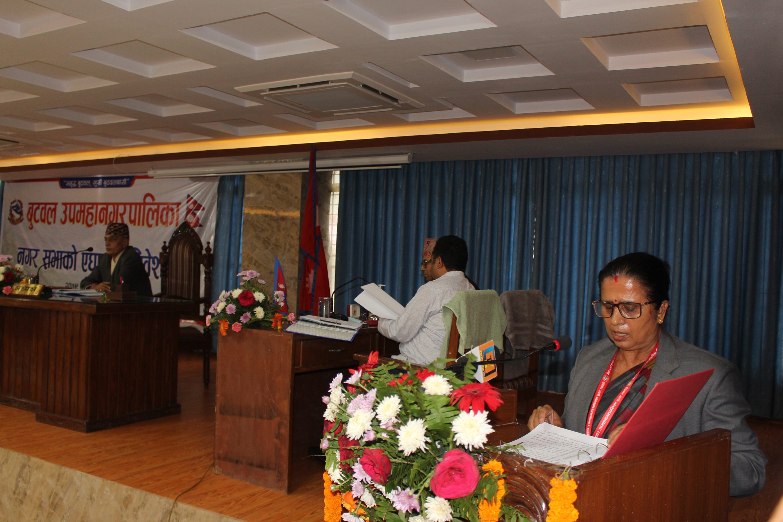 बुटवल उपमहानगरपालिकाको आर्थिक वर्ष २०७९÷०८० को लागि उपप्रमुख श्री सावित्रादेवी अर्यालद्धारा नगर सभाको एघारांै अधिवेशनमा प्रस्तुत आय र व्ययको अनुमान तथा वार्षिक कार्यक्रम