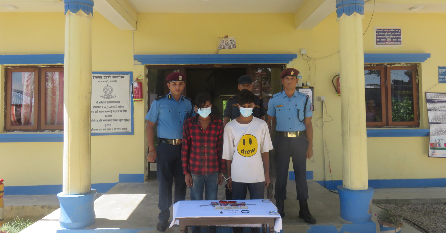 प्रहरीले युवाहरुसगबाट स्मार्टफोन र १३ थान कण्डम बरामद गरेको छ । पक्राउ परेका दुवैजनालाई जवर्जस्ती करणी उद्योग कसुर अन्तरगत म्याद थप भई थप अनुसन्धान भैरहेको प्रहरी निरीक्षक जगन्नाथ मरासिनीले बताए ।