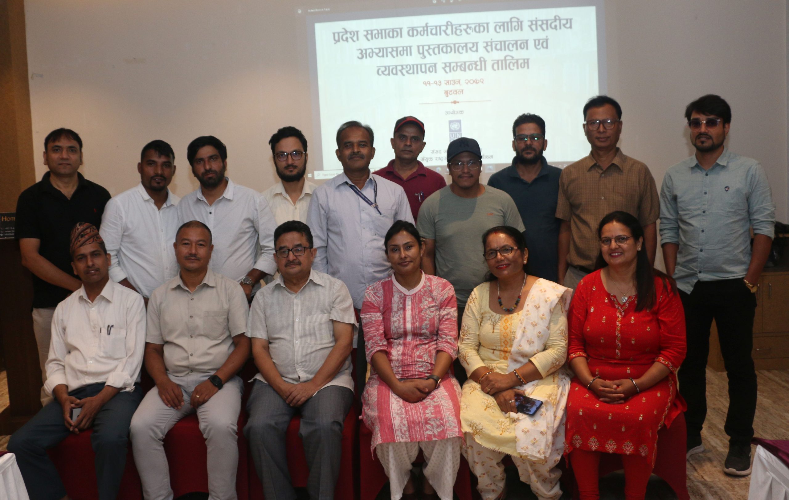 सबै प्रदेश सभाका पुस्तकालयका कर्मचारीहरुलाई पुस्तकालय सञ्चालन एंव व्यवस्थापन सम्बन्धी ३ दिने तालिम प्रदान गरिएको छ । संसद सहयोग परियोजना संयुक्त राष्ट्रसंघीय विकास कार्यक्रमको आयोजनामा सात वटै प्रदेशका प्रदेश सभाका पुस्तकालयमा कार्यरत कर्मचारीहरुलाई उक्त तालिम दिइएको छ ।