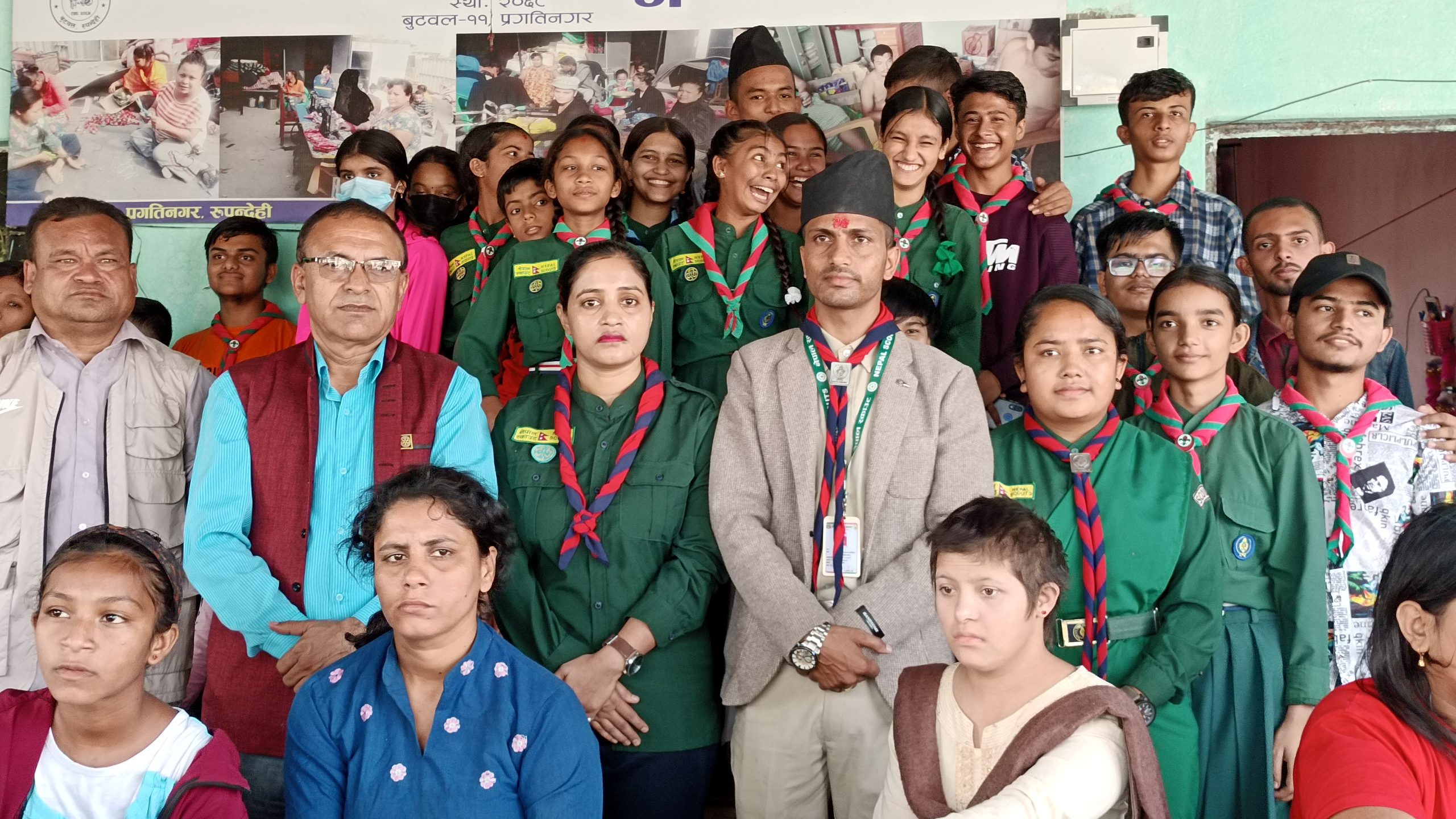 स्काउट मास्टर बिद्या खडका , पुजा पाण्डेको आतिथ्यता बुटवल उप महानगरपालिका स्काउट समिति सदस्य एवं स्काउट रोभर मास्टर , स्काउट मास्टर तथा स्काउट (डीएमटी ) नवराज खरेलको अध्यक्षता र नवज्योति बोर्डिङ स्कुलका स्काउट सदस्य जविक पाठकको संचालनमा कार्यक्रम सम्पन्न भएको थियो ।