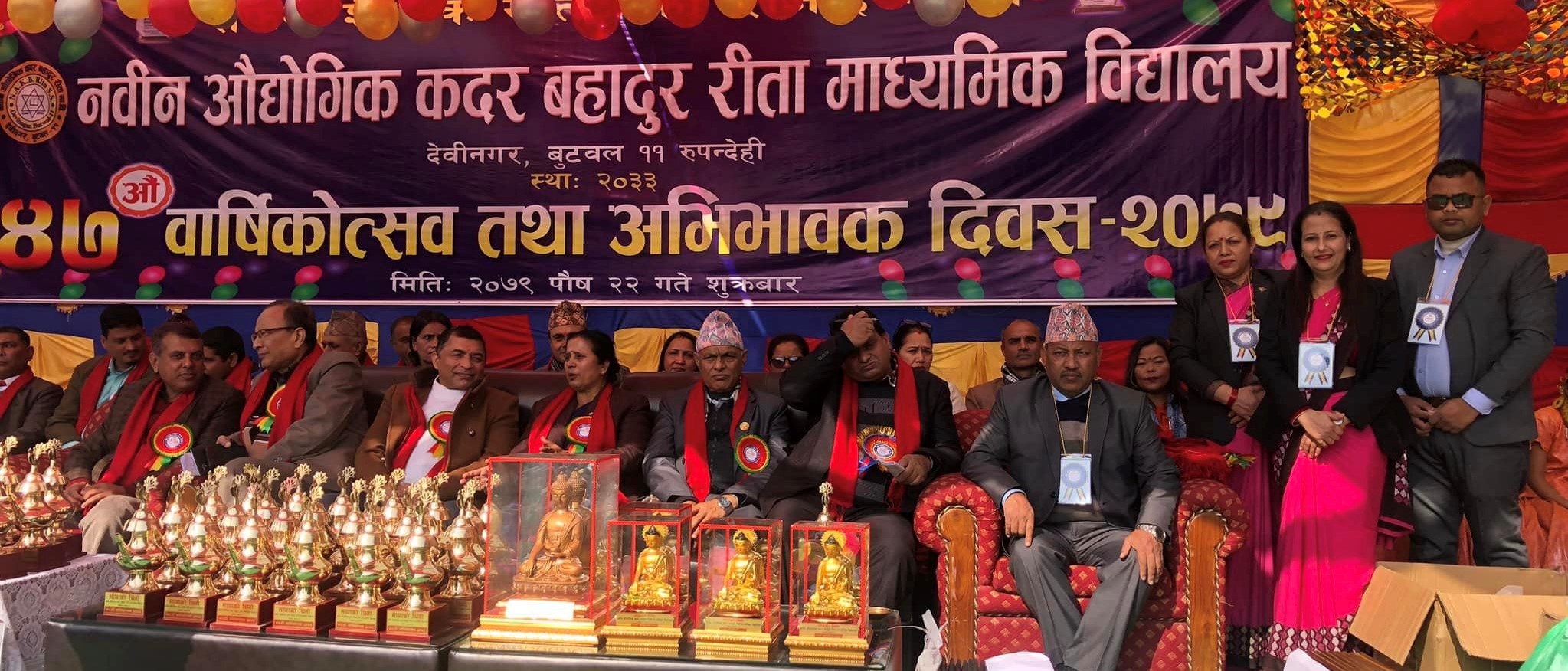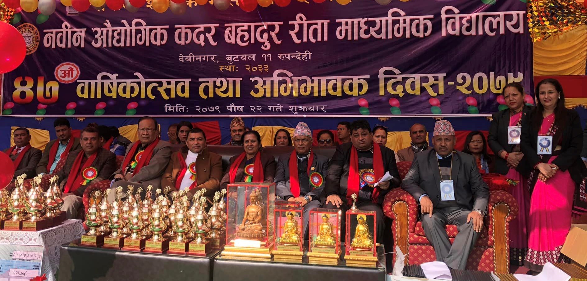 बुटवल स्थीत नवीन औद्योगिक कदर बहादुर रीता मा.वि. देवीनगरको ४७ औ वार्षिकोत्सव तथा अभिभावक दिवस शुक्रवार भव्य रुपमा सम्पन्न भएको छ ।