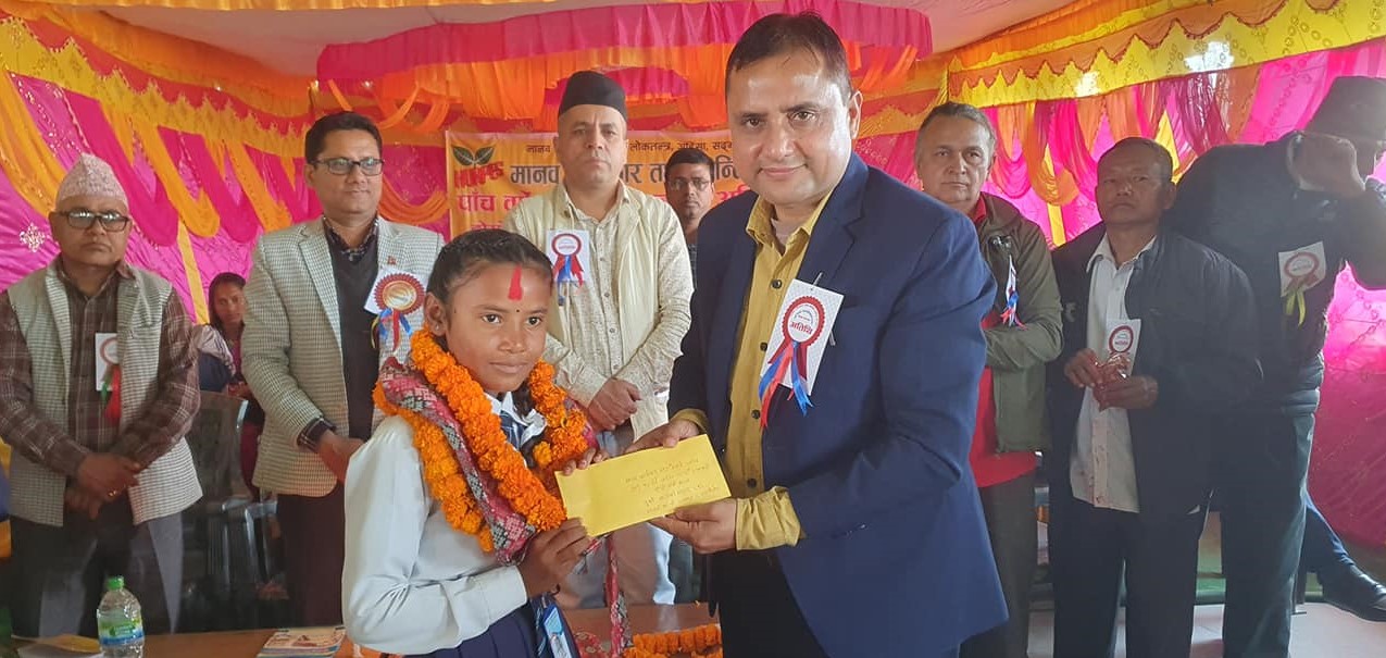 ‘छोरी पढाऔ ः गरिमा बढाऔँ’ भन्ने आह्वानसहित मानव अधिकार तथा शान्ति समाजले प्रारम्भ गरेको बालिका छात्रवृत्ति अभियान अन्तगर्त पाँच वर्षसम्म अर्थात १० कक्षा पुगुन्जेलसम्म यिनै बालिकाहरुलाई रु. १२ हजारका दरले छात्रवृत्ति प्रदान गरिने छ ।