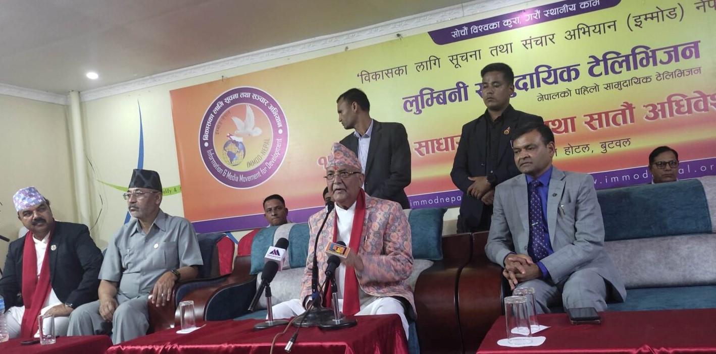 बुधबार बुटवलमा लुम्बिनी सामुदायिक टेलिभिजनको १७ औं वार्षिक साधारणसभाको उद्घाटन गर्दै ओलीले टेलिभिजनकै सूचना र समाचार सामग्रीहरु युट्युब र टिकटकमा आउने गरेको बताए ।अध्यक्ष ओलीले समाचारका स्रोतहरू टेलिभिजनसहितका सञ्चारमाध्यामहरू नै भएकाले युटुब, फेसबुकलगायतका सामाजिक सञ्जालबाट हच्किन आवश्यक नरहेको बताए।